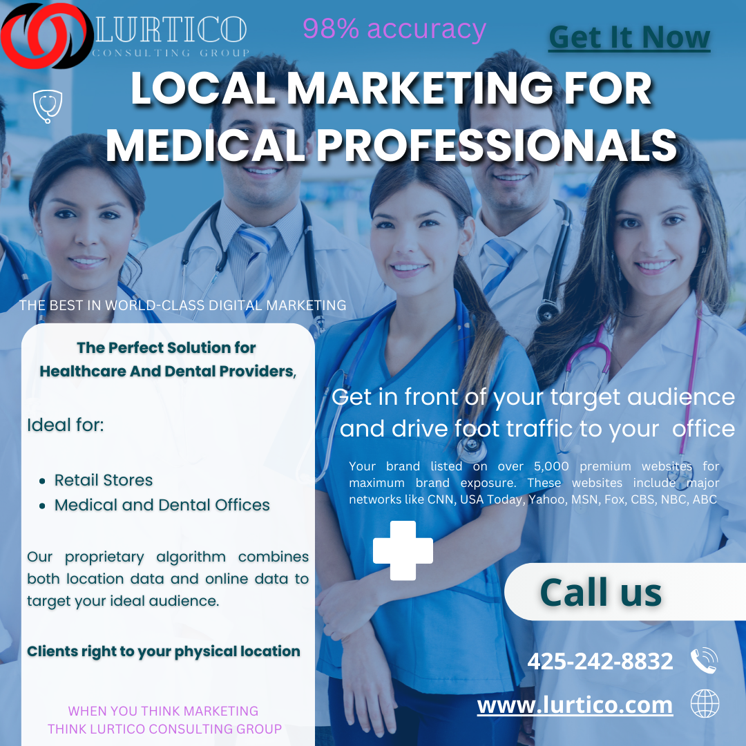 Get in front of your target audience and drive foot traffic to your medical or dental office. Get real results with Lurtico Consulting Group. Call 425-242-8832. https://www.lurtico.com